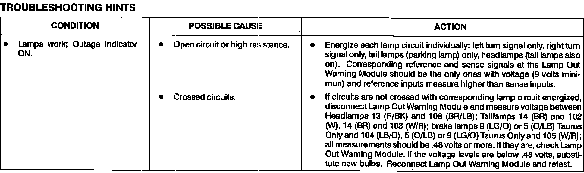 Lamp Out Indicator: Testing and Inspection