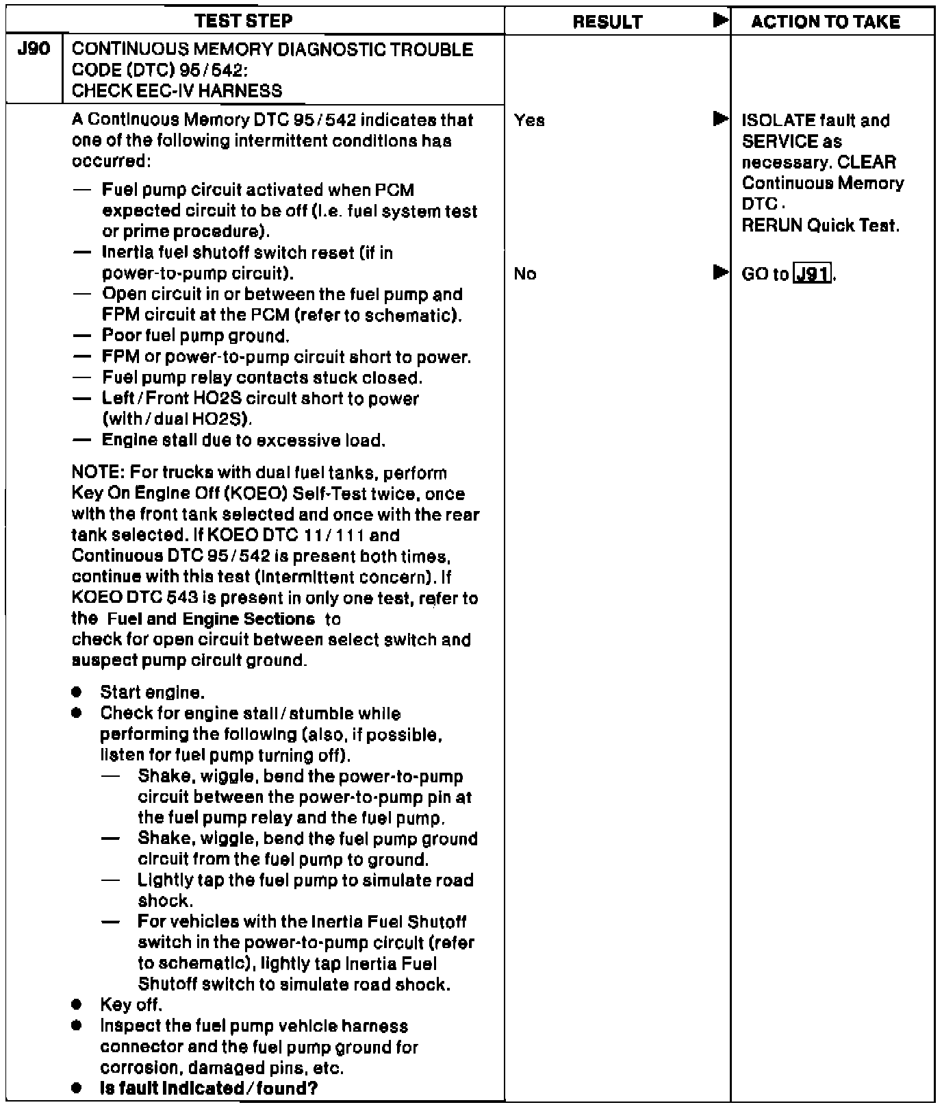 J90 - Continuous Code 95/542: Check EEC-IV Harness