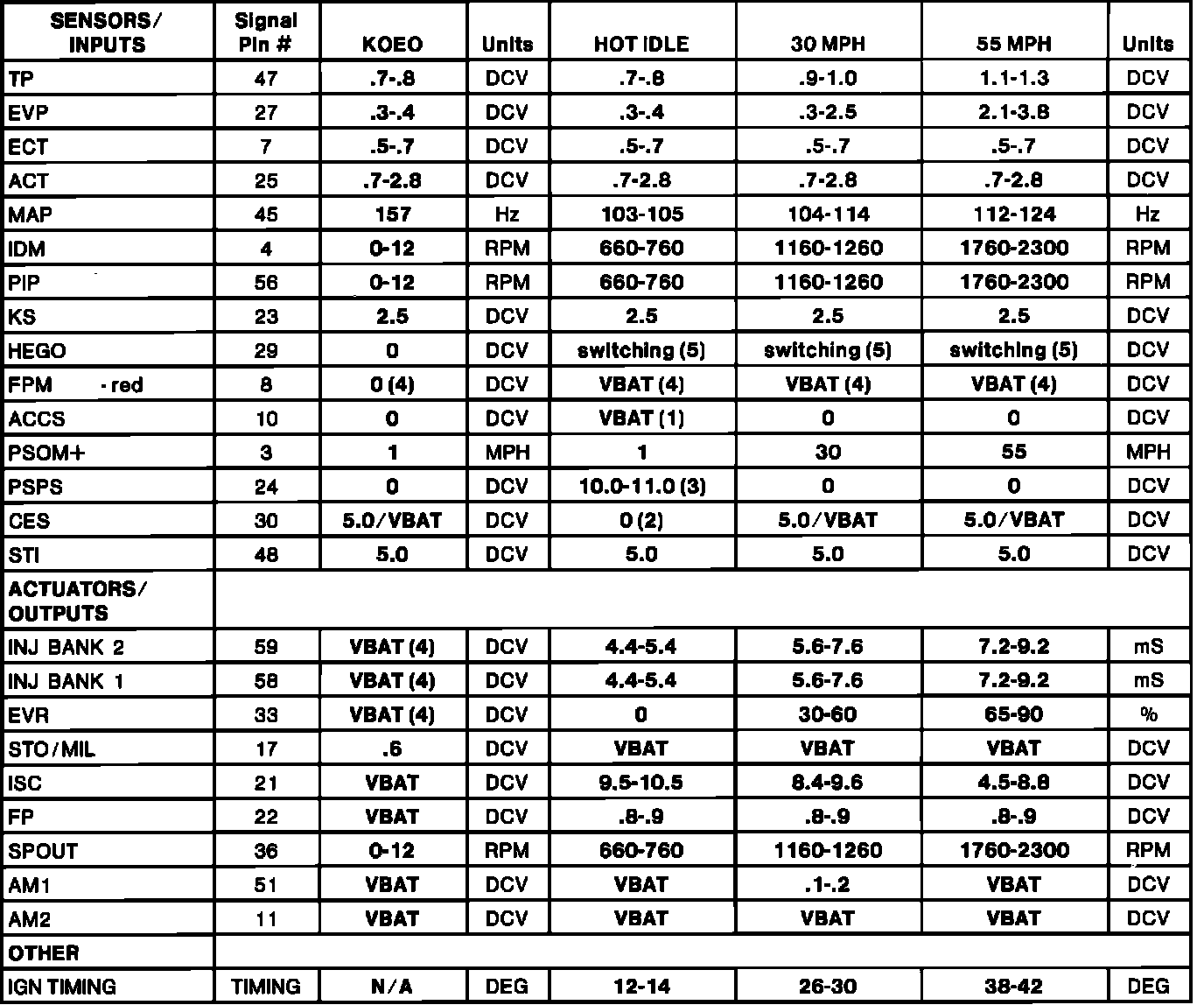 Normal Scan Data Values (Includes PIDs)