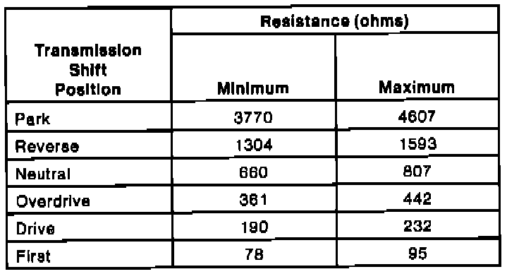 TD - Manual Lever Position Sensor Resistance Spec. Table