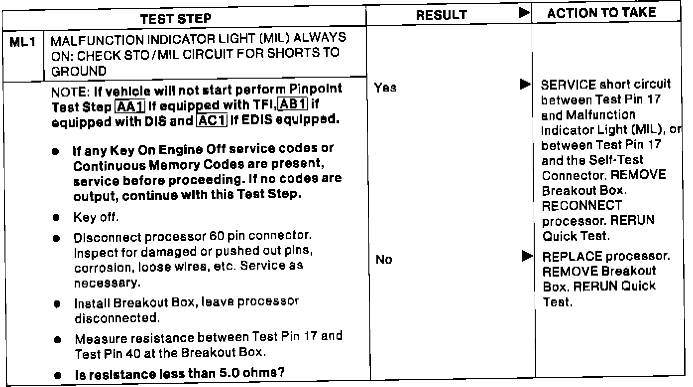 ML - Self-Test Output/Malfunction Indicator Lamp