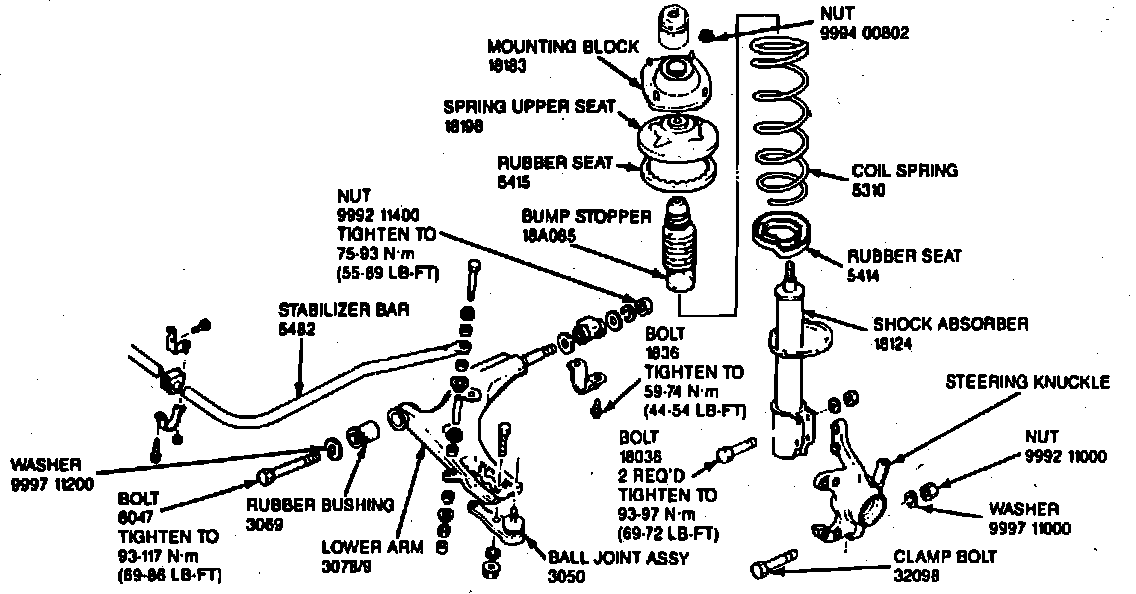 1. Raise and support vehicle, then remove wheel and tire assembly.Fig. 1 Front Suspension: