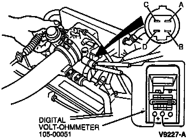 2. Connect a volt-ohmmeter between terminals B and D.