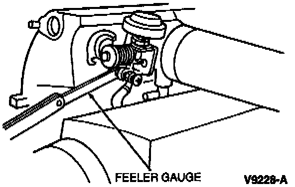 3. Insert a feeler gauge between the hard-stop screw and throttle body stop lever.