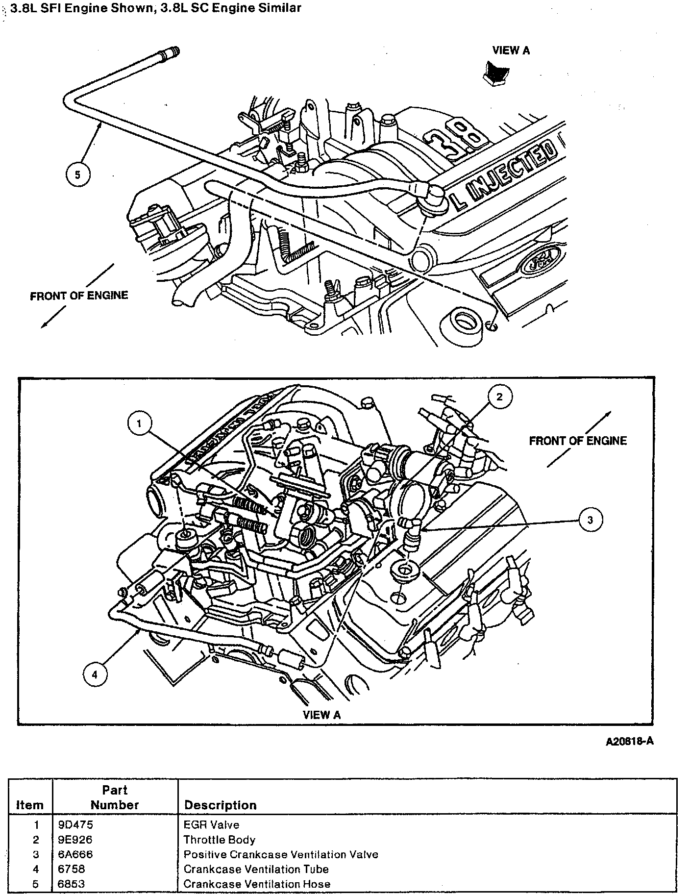 ^ Disconnect crankcase ventilation tube from Positive Crankcase Ventilation (PCV) valve.