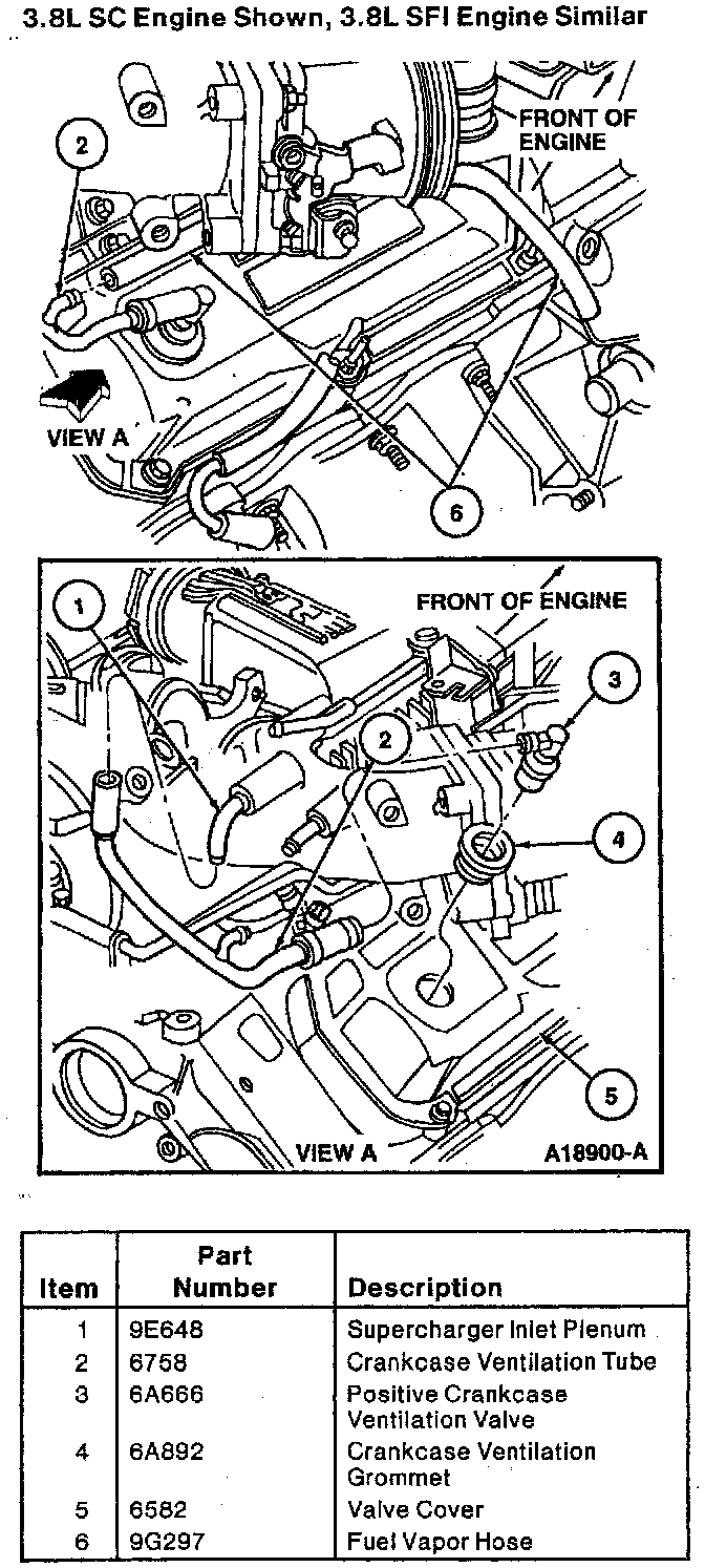 ^ Inspect PCV valve and crankcase ventilation grommet for deterioration. Replace if necessary.