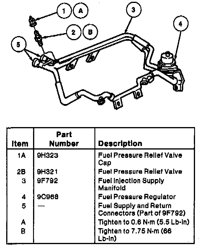 1. If fuel injection supply manifold is mounted to engine, remove fuel tank filler cap, then release pressure from system at fuel pressure relief valve on fuel injection supply manifold using Fuel Pressure Gauge T8OL-9974-B.
