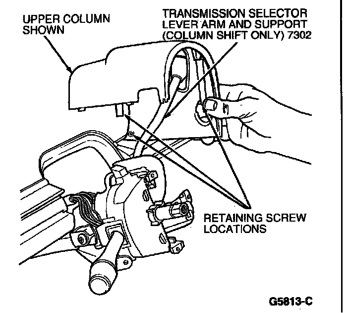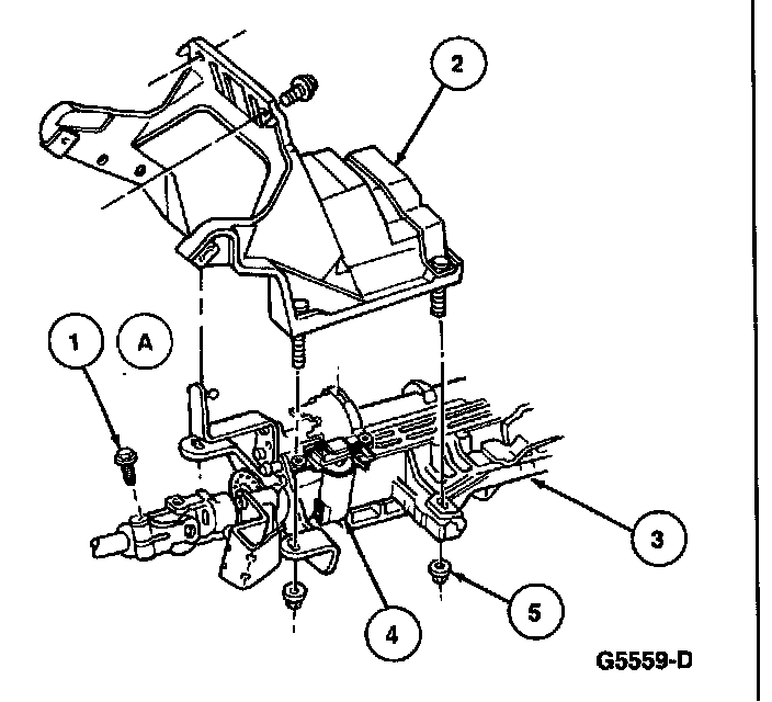 5. Position transmission shift cable and bracket to lower two screws of steering column tube. Tighten to 7-11 N.m (5-8 lb-ft).