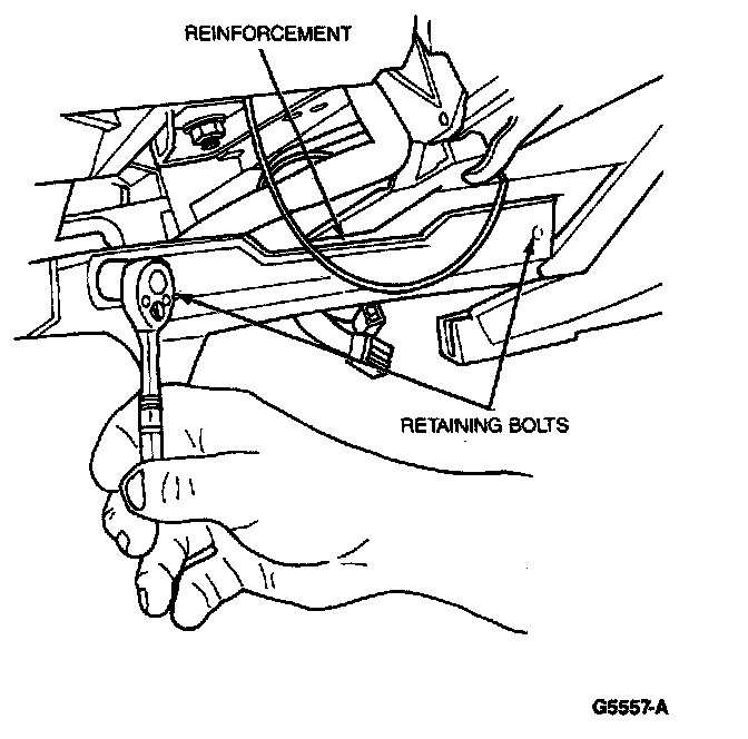 8. Remove two instrument panel reinforcement brace retaining bolts. Remove reinforcement.