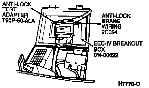 - Connect EEC-IV breakout box 014-00322 with Anti-Lock Test Adapter T90P-50-ALA or equivalent to the Anti-Lock 55-pin connector on wire harness.