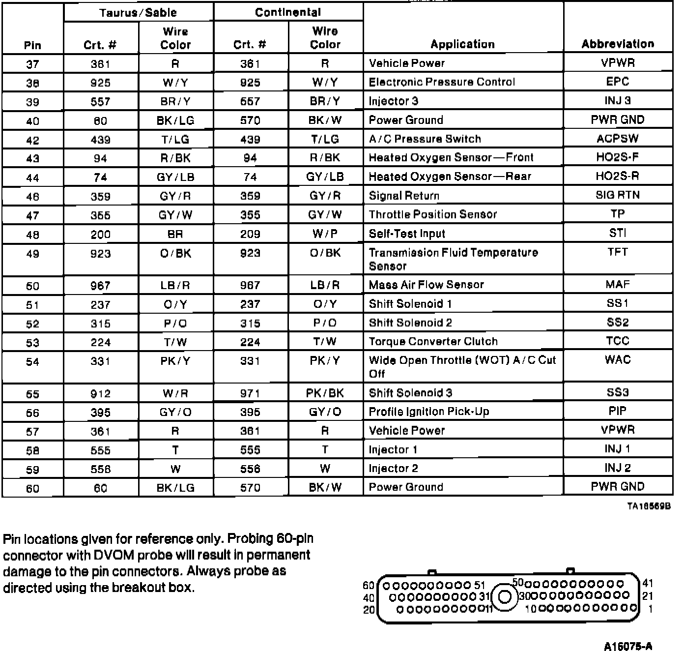 Powertrain Control Module (PCM) Connector Pin Usage: