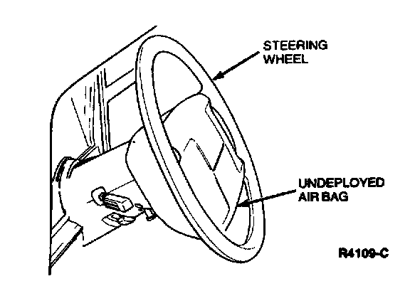 This procedure is to be used if a vehicle with a live air bag inflator is to be scrapped. Scrapping a vehicle may be required due to severe damage in a non-air bag deployable collision or at the end of the vehicle's useful life. This procedure assumes that the air bag wiring remains intact: that is, no diagnostic trouble codes are indicated by the air bag warning indicator, the system proves out correctly and the vehicle's battery is still in place (or one has been provided). This procedure is to be performed outdoors and away from other personnel, since the deploying air bag makes a loud report upon actuation.