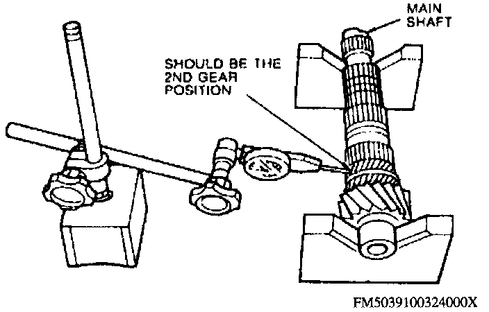d. Measure clearance between main shaft and gears where the gear is installed. Measure inside diameter of gear. Difference between two measurements is clearance. If clearance is more than 0.003 inch, replace gear and/or shaft as necessary.