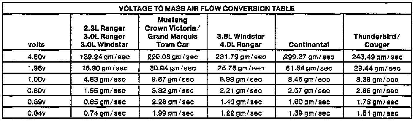 Voltage To MAF Conversion Table: