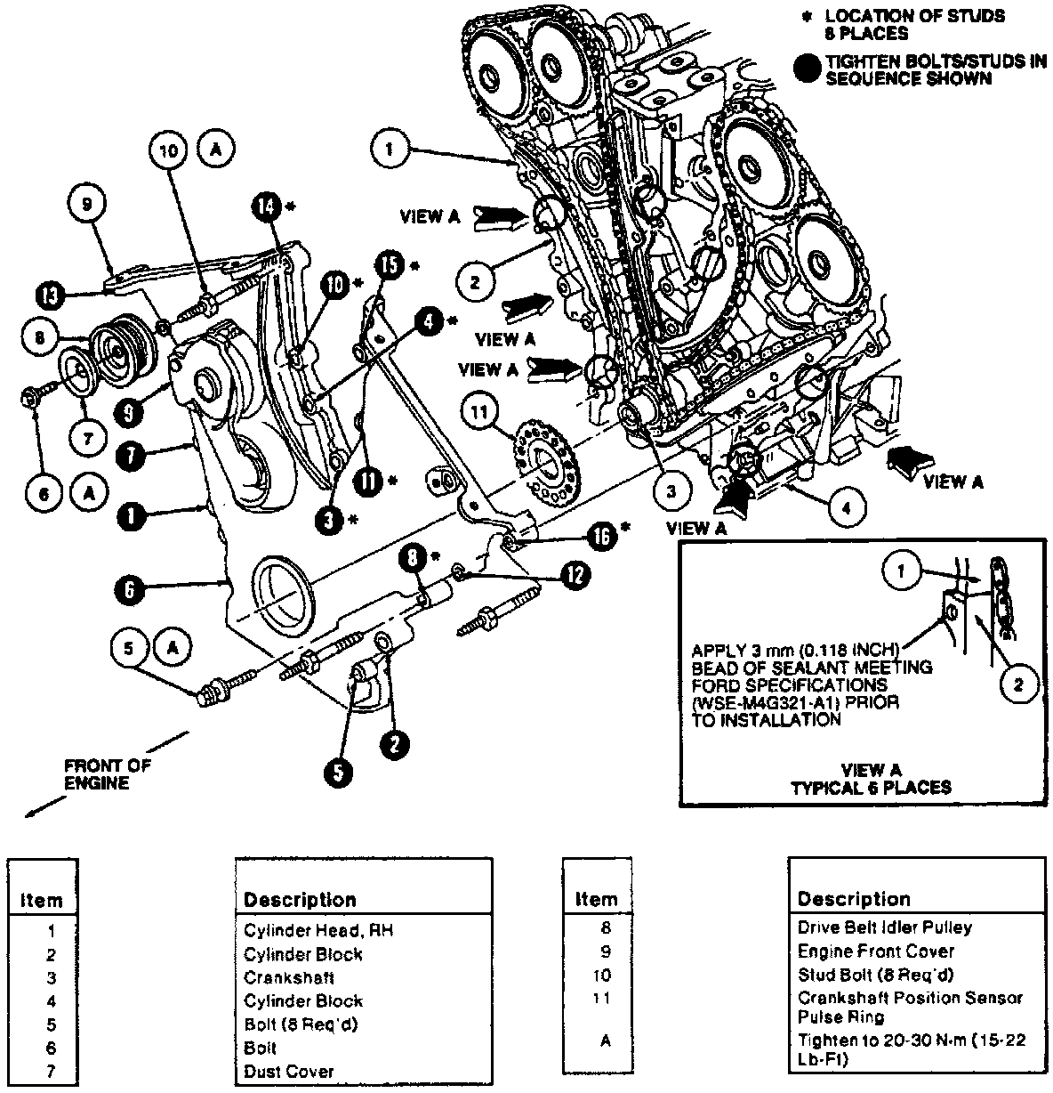 NOTE: Install front cover and front cover bolts and stud bolts in proper location and sequence no more than six minutes after applying sealer.