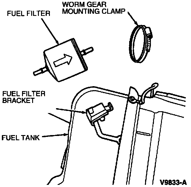 The in-line fuel filter is located downstream of the electric fuel pump module and is mounted on the fuel tank.