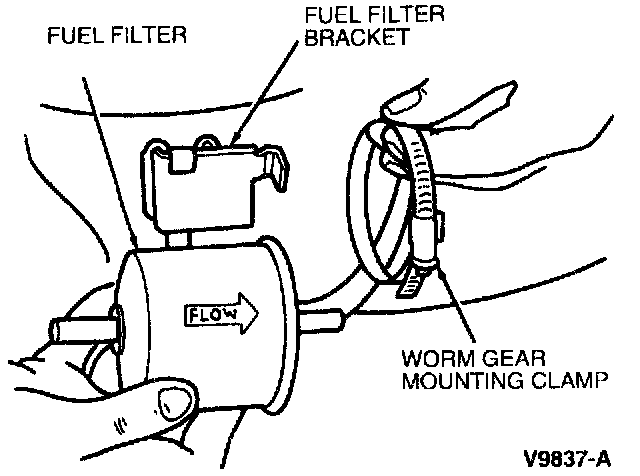 4. Remove fuel filter from bracket by loosening worm gear mounting clamp enough to allow fuel filter to pass through.