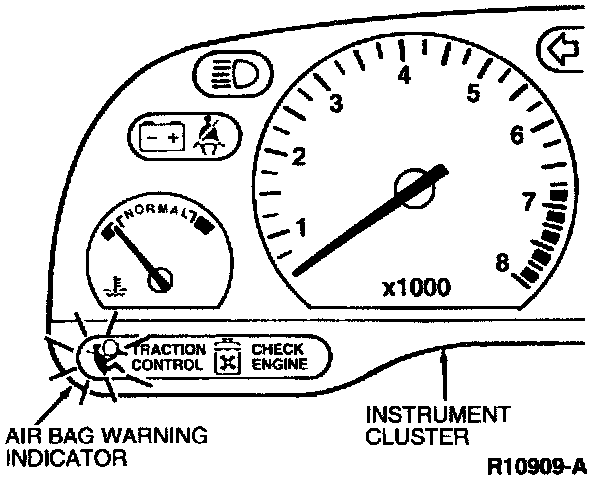 - The air bag diagnostic monitor illuminates the air bag warning indicator for approximately six seconds when the ignition switch is turned to RUN and then turns it off. This indicates that the air bag warning indicator is operational. If the air bag warning indicator does not illuminate or if the air bag warning indicator stays on or flashes at any time, a fault has been detected by the air bag diagnostic monitor.
