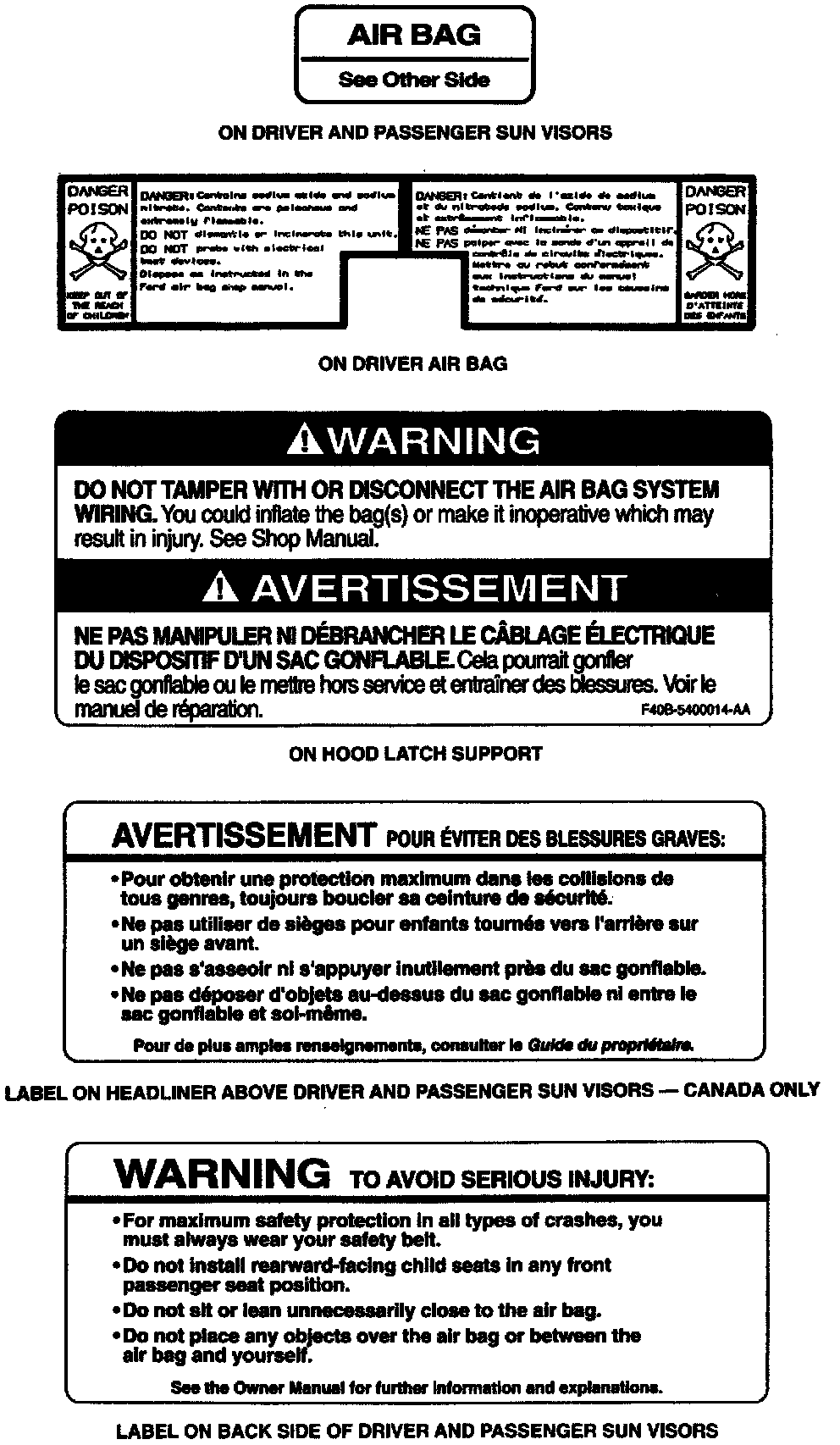 Typical Air Bag Warning Labels: