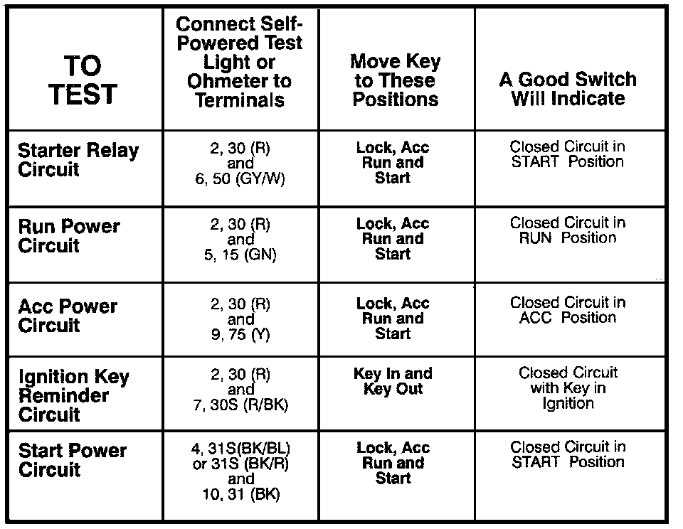 Ignition Switch: Testing and Inspection