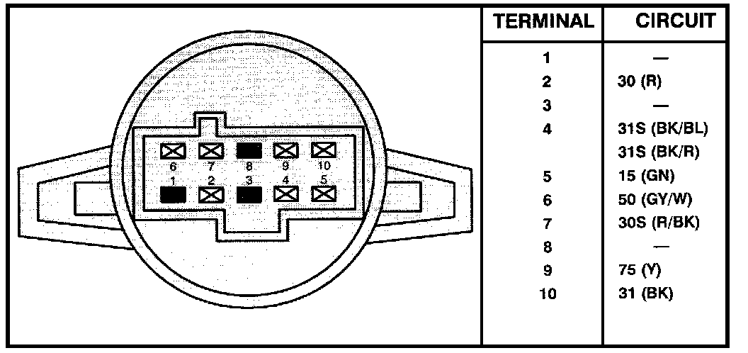 Ignition Switch - Terminal Locations: