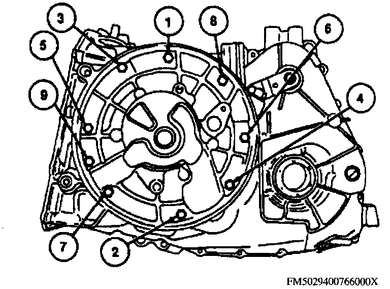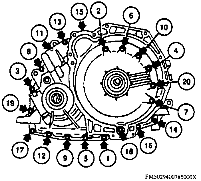 Converter Housing To Transaxle Case Bolt Tightening Sequence: