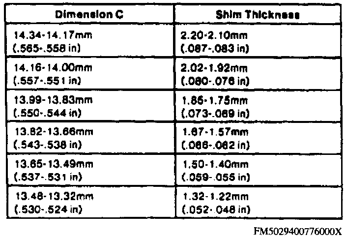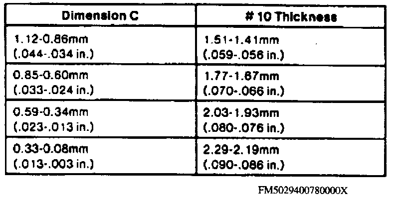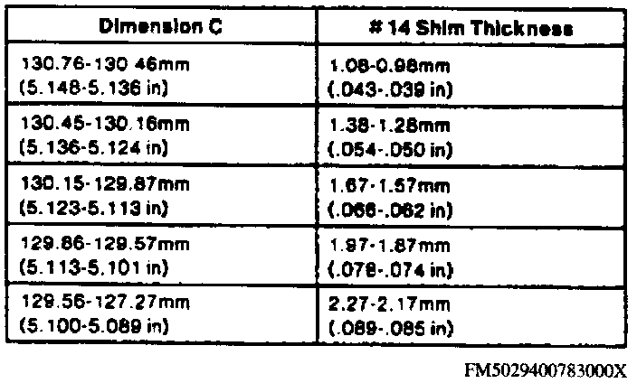 c. Subtract dimension B from dimension A to obtain dimension C, then refer to the Driven Sprocket Shim Thickness Chart for proper shim thickness.