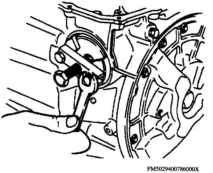 48. Remove pin and alignment tool, then install manual control lever assembly and bolt and torque bolt.