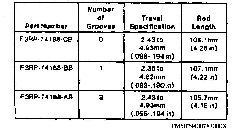 Servo Piston Travel Specification Chart: