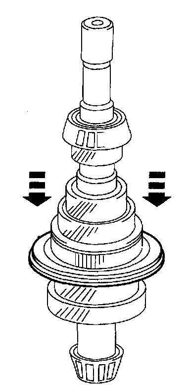 12. Engage fourth gear on input shaft, then align input and output shafts as necessary to install them in transaxle case. Do not lubricate tapered roller bearings until preload measurements have been obtained.