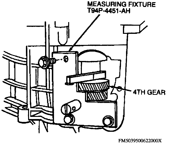 15. Position measuring bar on fourth gear face, then install pinion spline socket tool No. T94P-7025-EH, or equivalent, on input shaft end.