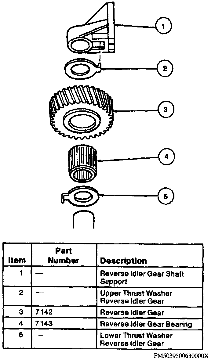 Reverse Idler Gear Assembly Components: