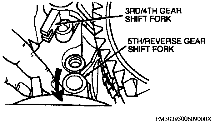 8. Remove 1-2 shift fork, then rotate 5-R shift fork aside and remove 3-4 shift fork.