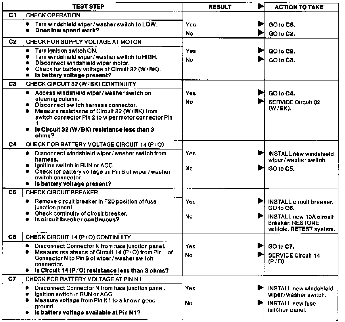Test C: Wipers Inoperative At High Speed: