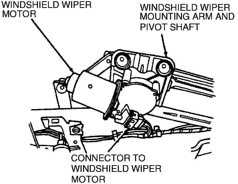 3. Disconnect the harness from the wiper motor, then the wiper motor output arm to the wiper motor crankshaft bolt.