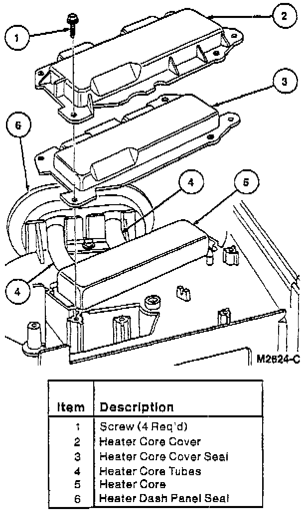 5. Install the seal on the heater core tubes.