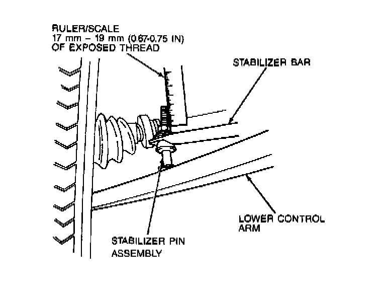 7. Install the stabilizer bolts, washers, bushings, sleeves and nuts. Tighten the stabilizer nuts so that 17-19mm (0.67-0.75 inch) of thread is exposed at the end of the bolt.