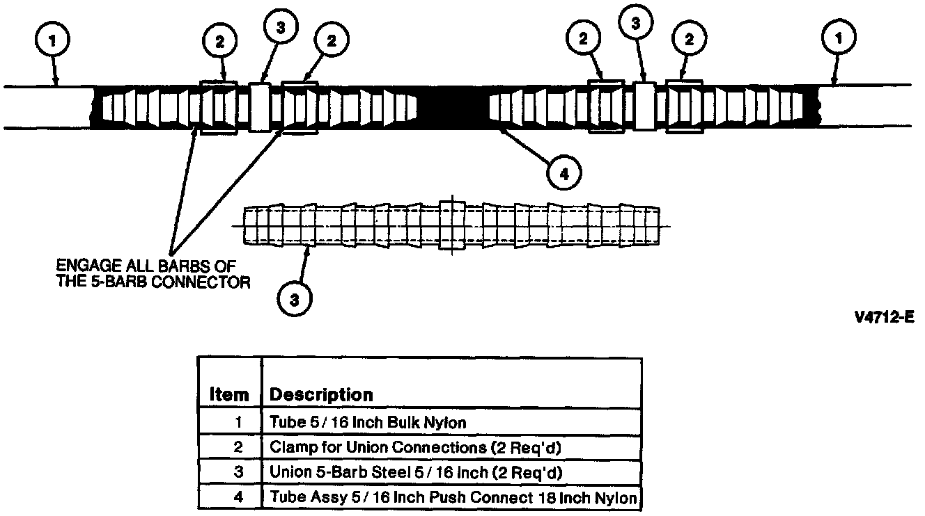 NOTE: To make hand insertion of barbed connectors into nylon easier, tube end must be soaked in a cup of boiling water for one minute immediately before pushing barbs into nylon.