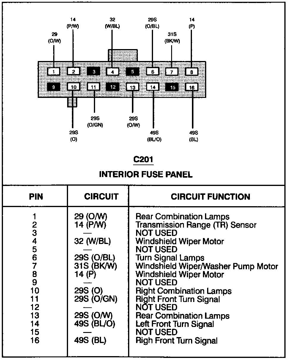 Interior Fuse Panel (C201):