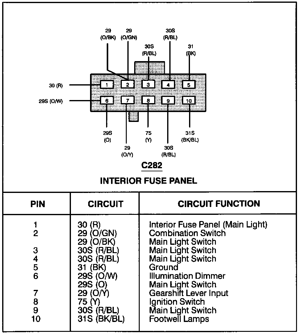 Interior Fuse Panel (C282):