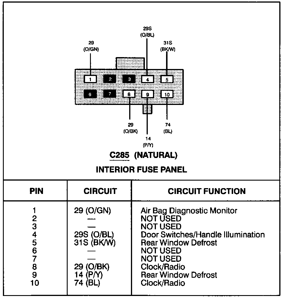 Interior Fuse Panel (C285):