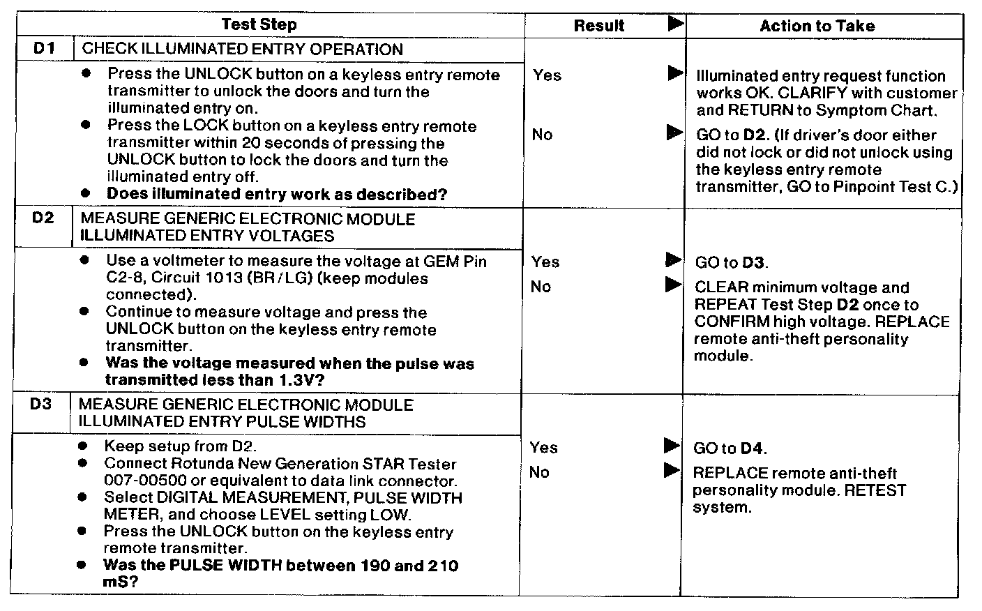Pinpoint Test D: Illum. Entry Inop. With Remote Transmitter