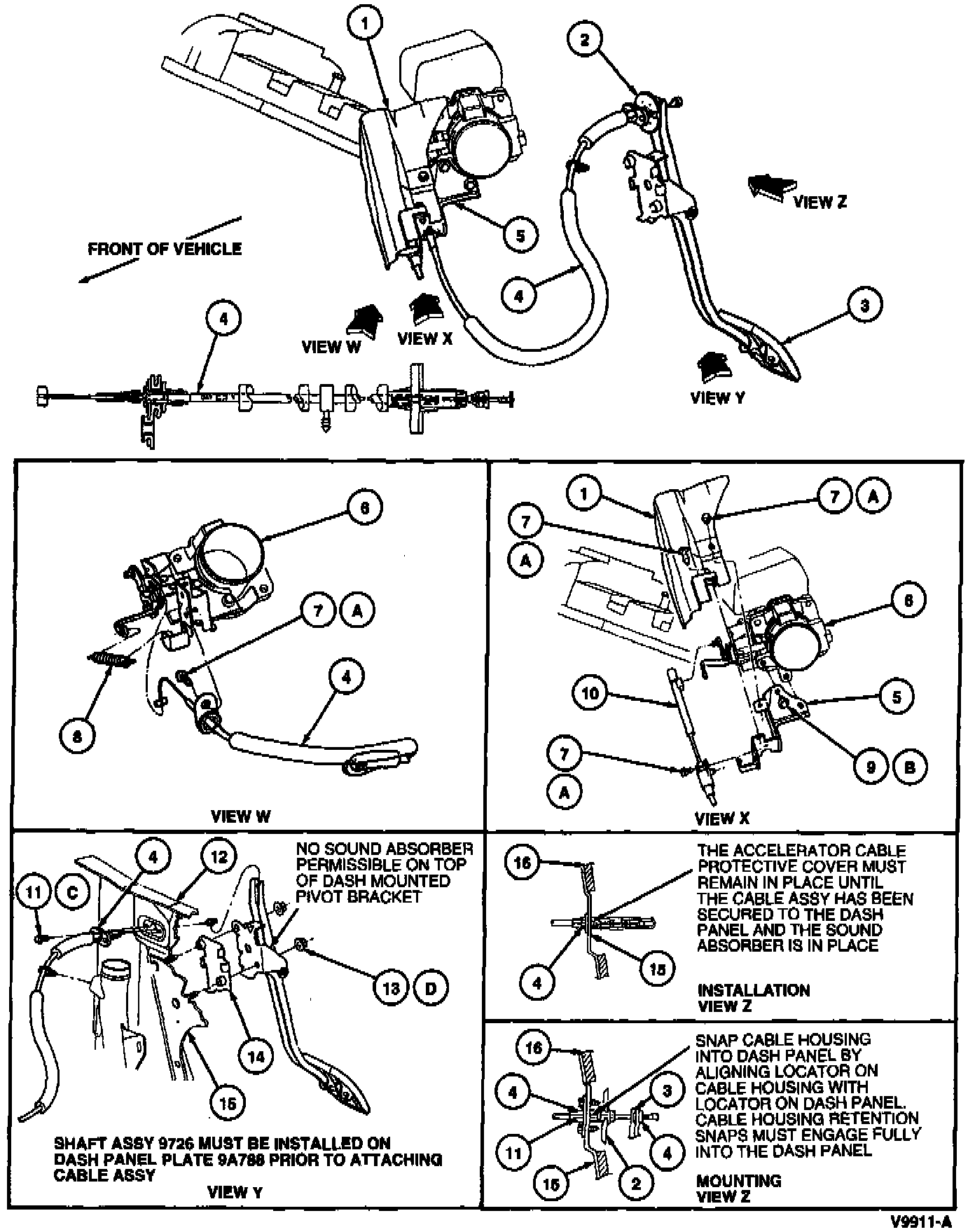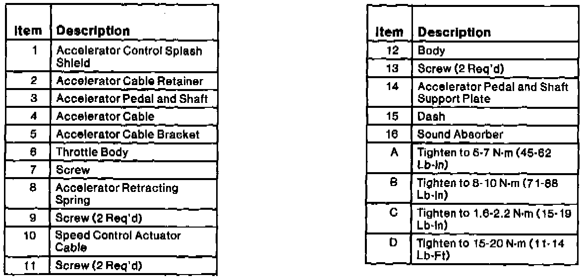 - Tighten screws retaining accelerator cable to dash panel to 1.6-2.2 Nm (14-19 lb in).