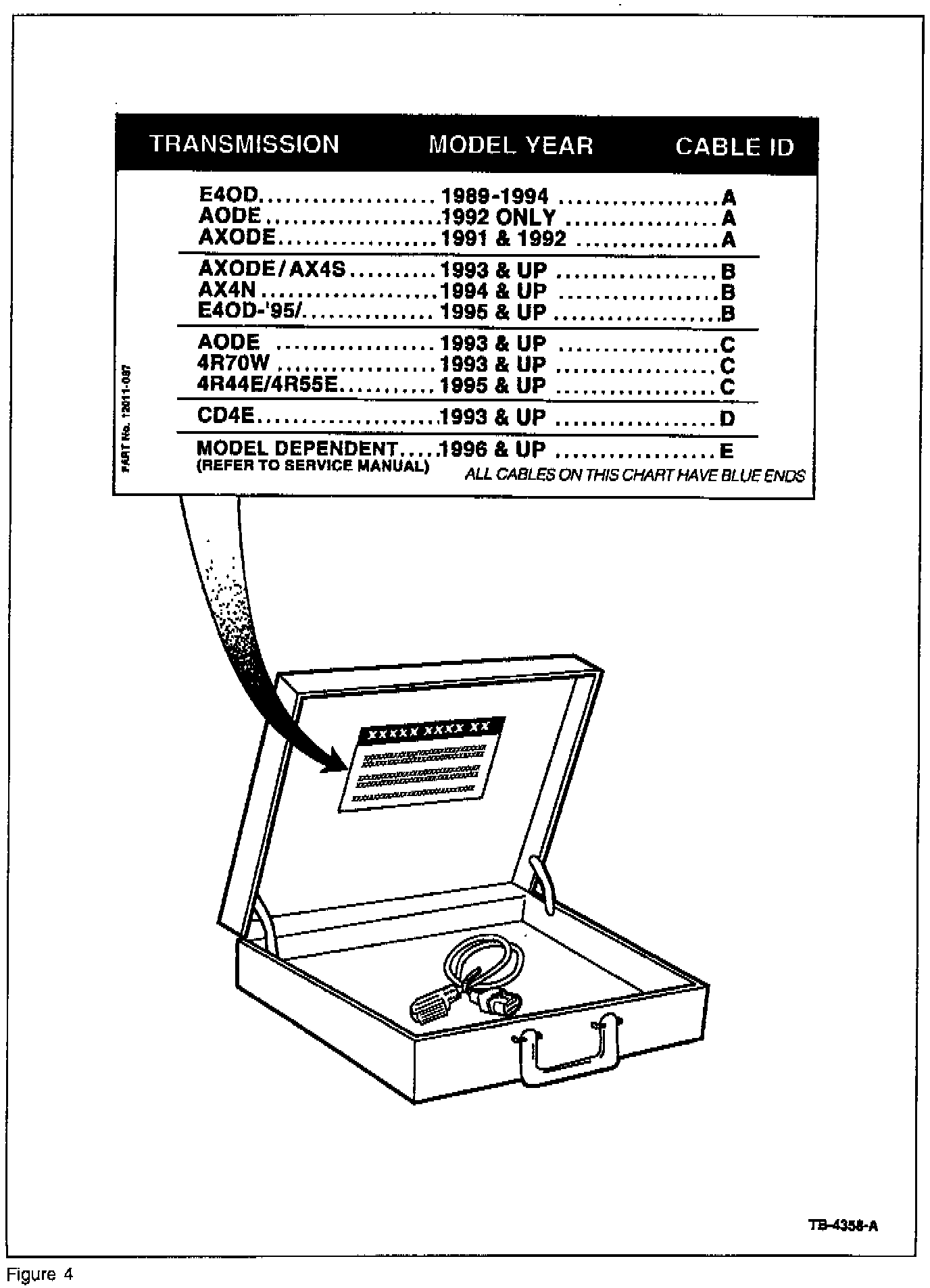 The new "E" TR cable is used on Taurus/Sable with electronic instrument cluster and floor-mounted shifters (Figure 3).