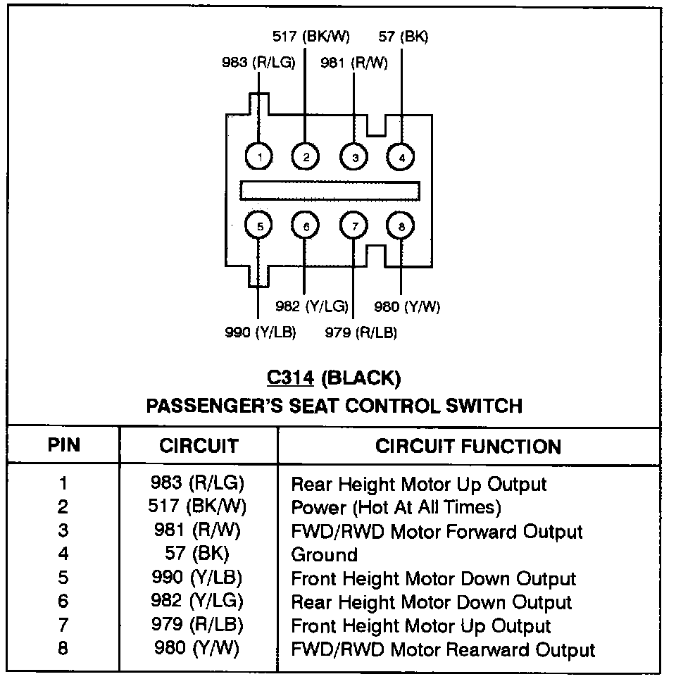 Passenger's Seat Control Switch: