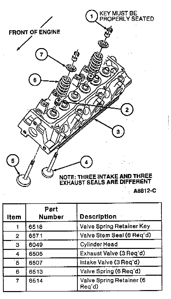 6. Remove valve spring retainer key, valve spring retainer and valve spring.