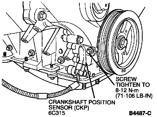 2. Position crankshaft position sensor and install retaining screw. Tighten to 8-12 Nm (71-106 lb in).