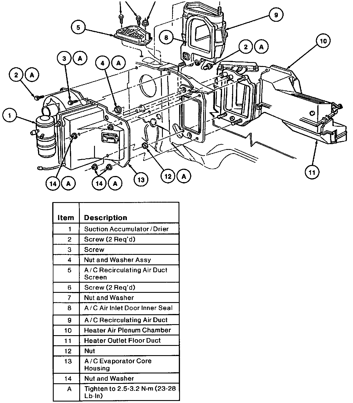 12. Fill the cooling system with coolant to replace coolant lost during removal of the heater air plenum chamber.