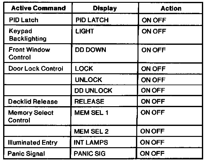 Driver Door Module (DDM) Active Command Index