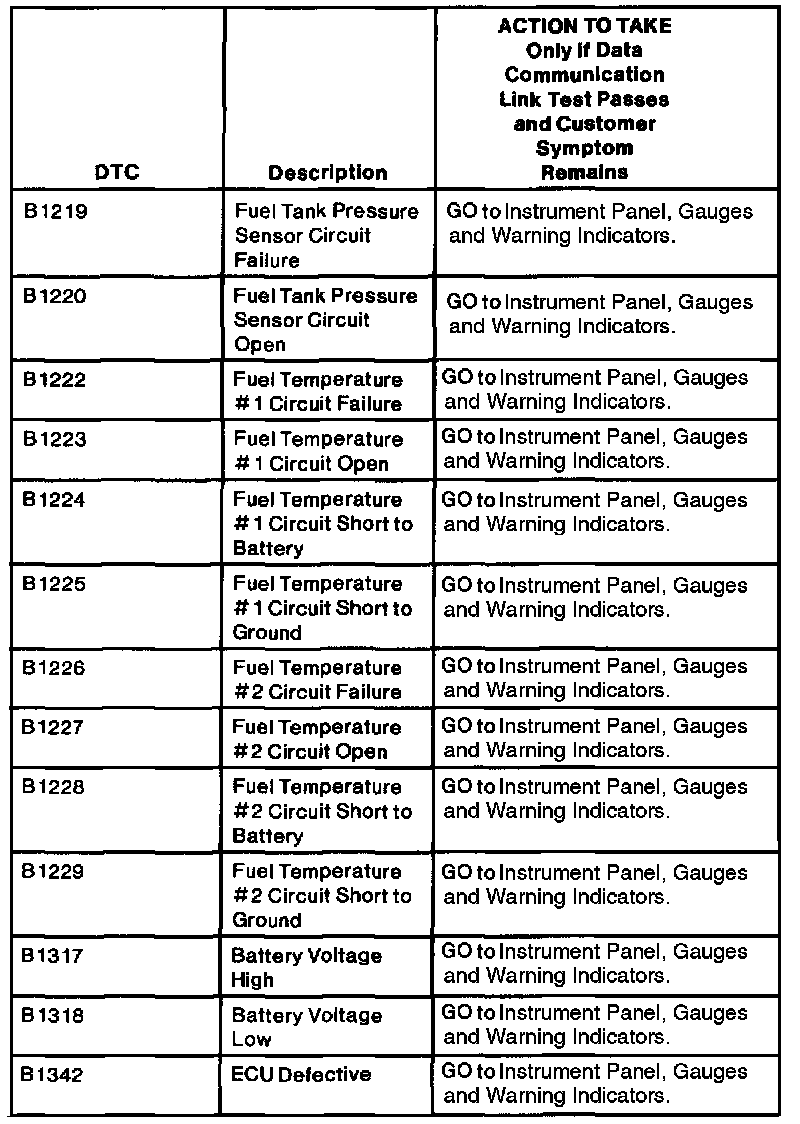 Natural Gas Vehicle Module Diagnostic Trouble Code Index Table